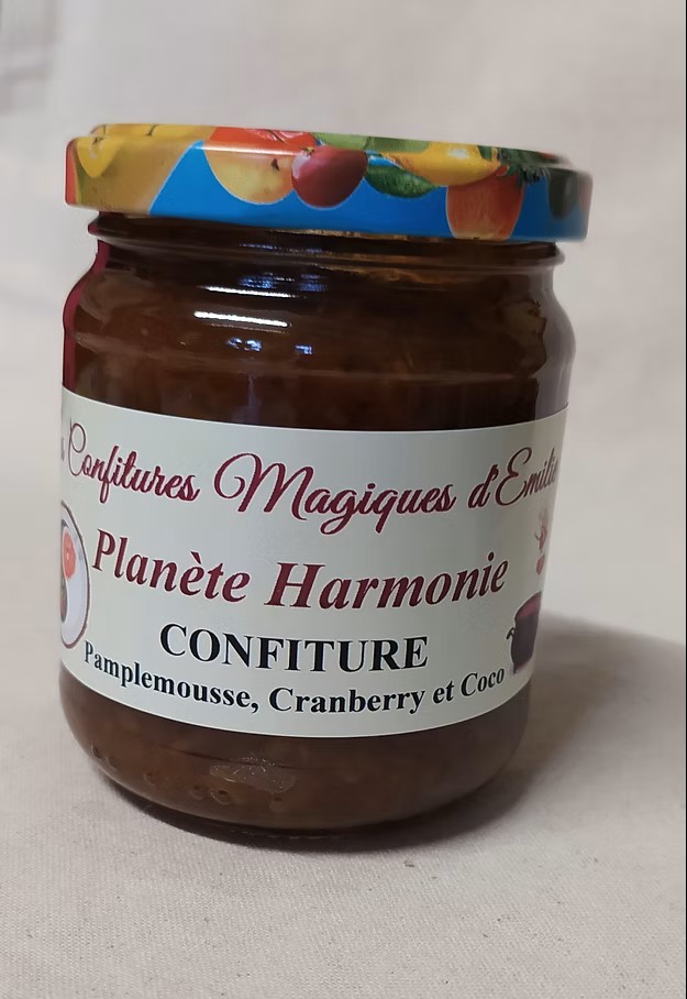 Bienvenue au royaume du renouveau ! Entre le pamplemousse souverain, le cranberry qui n'a peur de rien, et la noix de coco pleine de possibilités, cette confiture nous fait attérir sur la planète Harmonie, où nos expériences passées préparent les plans de cet avenir où tout est à construire.